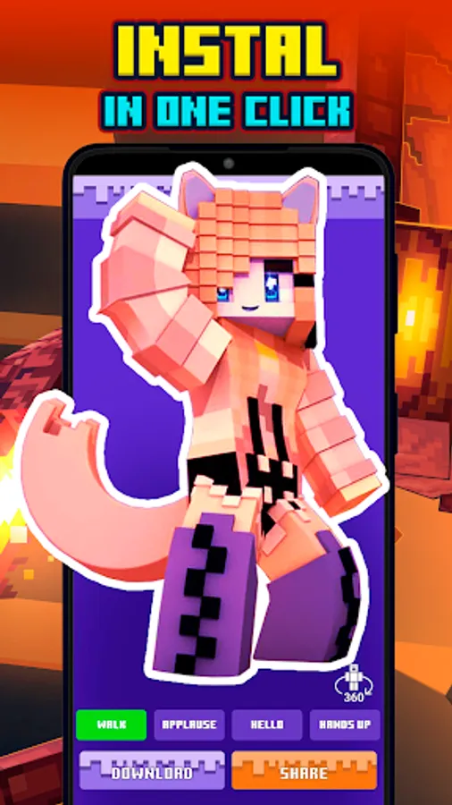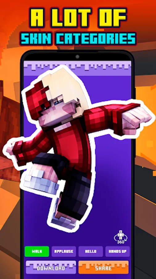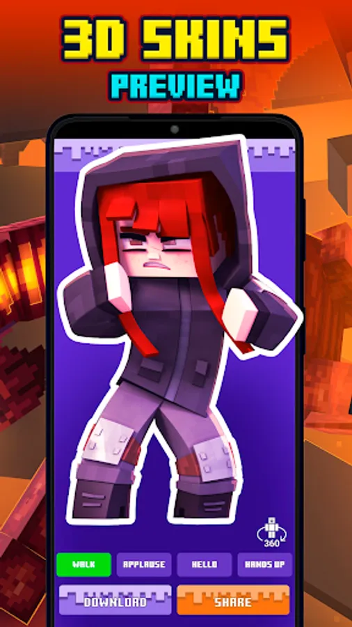 We have a huge collection of various skins: camouflage, hd skins, skins sonic, creeper skins, noob skins, zombie, baby, school, wing, ears, superhero, cute girl, nova, anime skins and others Skins for Minecraft 2. We have 3D preview of the skins, now you can see the character right on your phone, as well as move it and twist it!