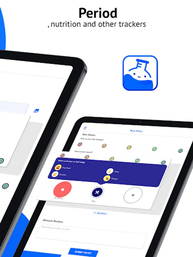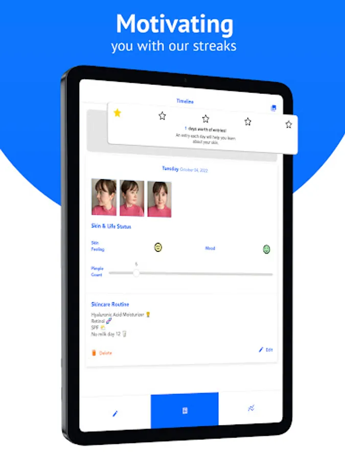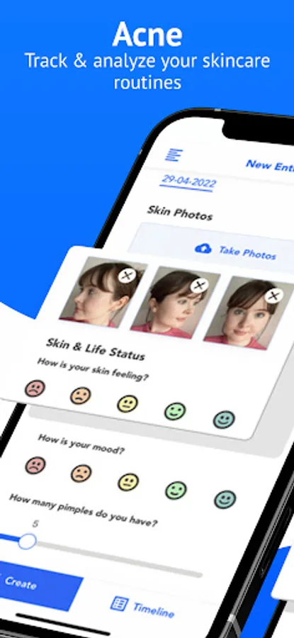 - Acne/skin photos and logs are saved privately in the app