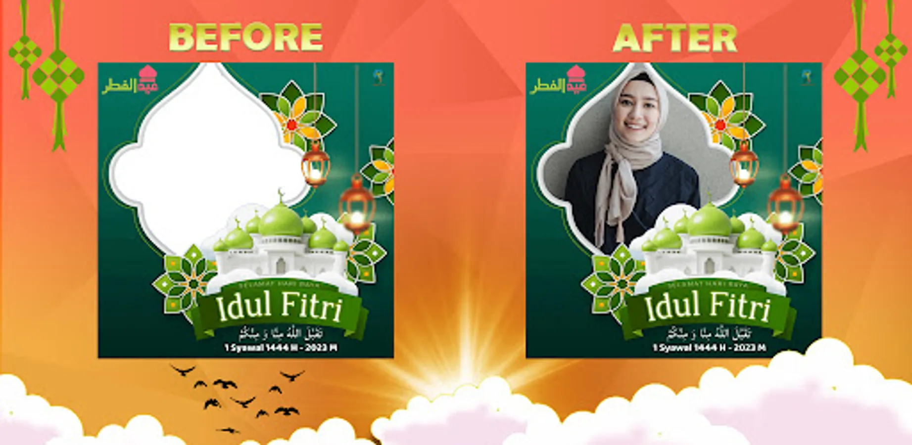 In addition to photo frames for Eid Greetings 2023 & Eid Stickers for Eid Al-Fitr 2023, Skintoolz released an Eid edition application with the title Greetings for Eid Al-Fitr 2023, Eid al-Fitr twibbon in this application there are various kinds of Eid greeting cards 1444H that you can share on various social media, either for status or as an expression of Eid al-Fitr to family, relatives and friends.