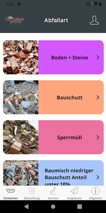 In the waste container app you can then manage your orders, view invoices and delivery notes.