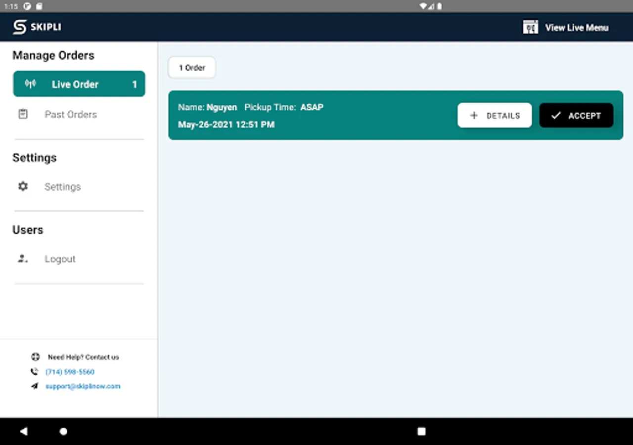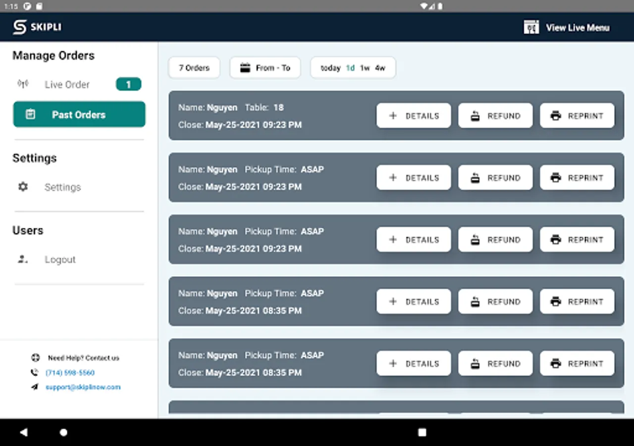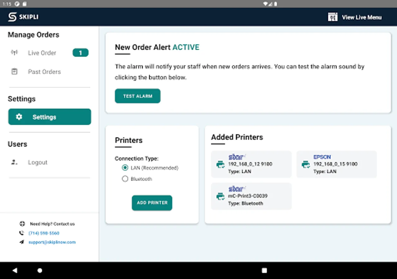 The application helps Skipli's merchant to manage incoming orders, e.g accept, close orders, and print out order's details via connected thermal printer