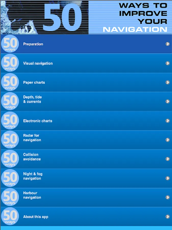 50 WAYS TO IMPROVE YOUR NAVIGATION distils the experience Dag Pike has gained from over 50 years of navigating a whole range of craft from high speed power boats and lifeboats to ships and sailing boats. This app is your passport to practical navigation techniques at sea that will get you safely to your destination whether in fine weather or foul.