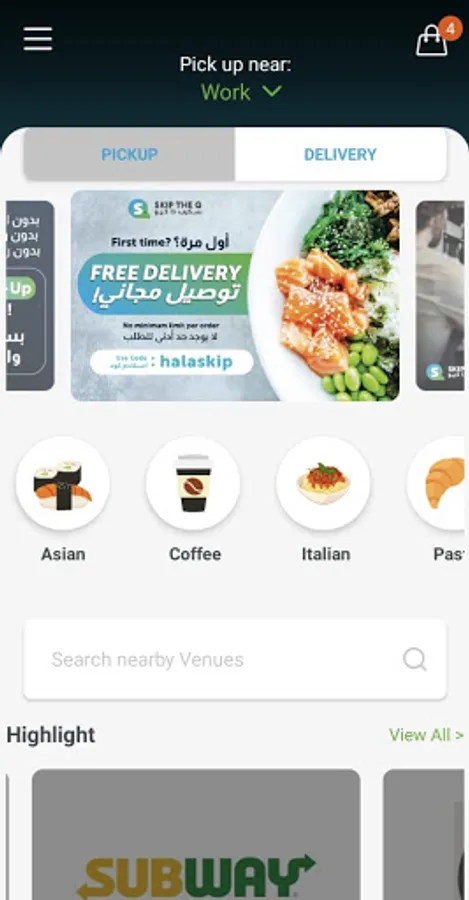 Do you wish you could enjoy your cravings, minus the hassle? Your favorite food is only a click away, with Skip The Q - The 1st Food Pick Up service in Jeddah! Opt to pick-up or get your food delivered, your tap, your call. Choose your restaurant, pick your food, and get ready to be satisfied on a whole new level!