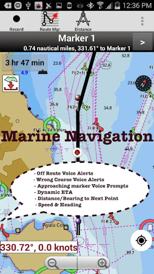 GPS Marine Charts App offers access to charts covering Canada & USA waters (derived from CHS data). Only marine GPS app to have route assistance with Voice Prompts for marine navigation. It has route manager to create new boating routes or import existing GPX/KML routes. It supports Nautical Charts course up orientation.