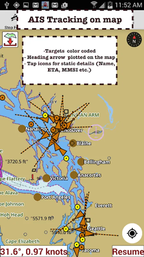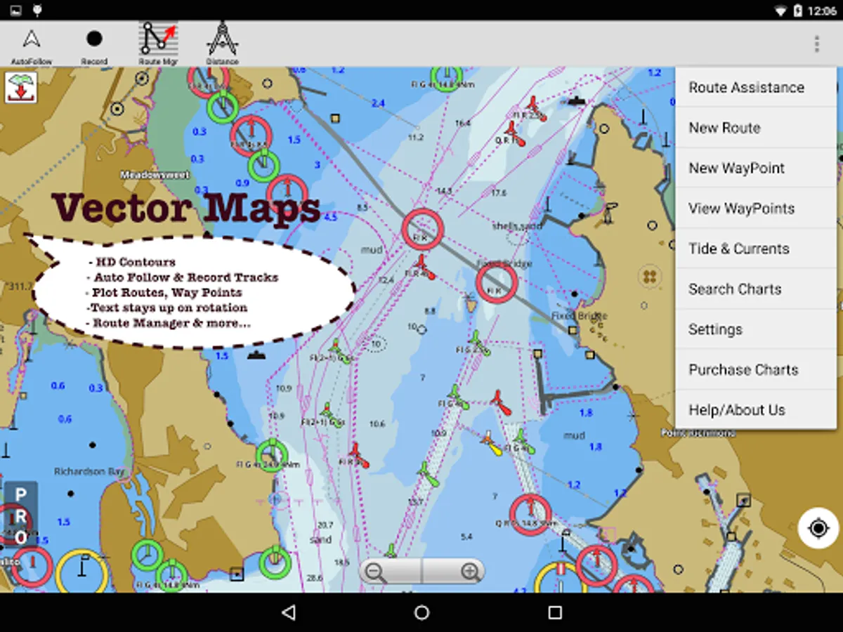 First marine navigation app to have boat route assistance with Voice Prompts. All features of a Marine Chart plotter in one app!