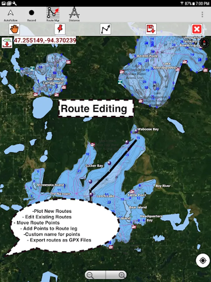 Create new boat routes / Waypoints, or import existing GPX/KML routes on device. Has Marine AIS(NMEA) support.