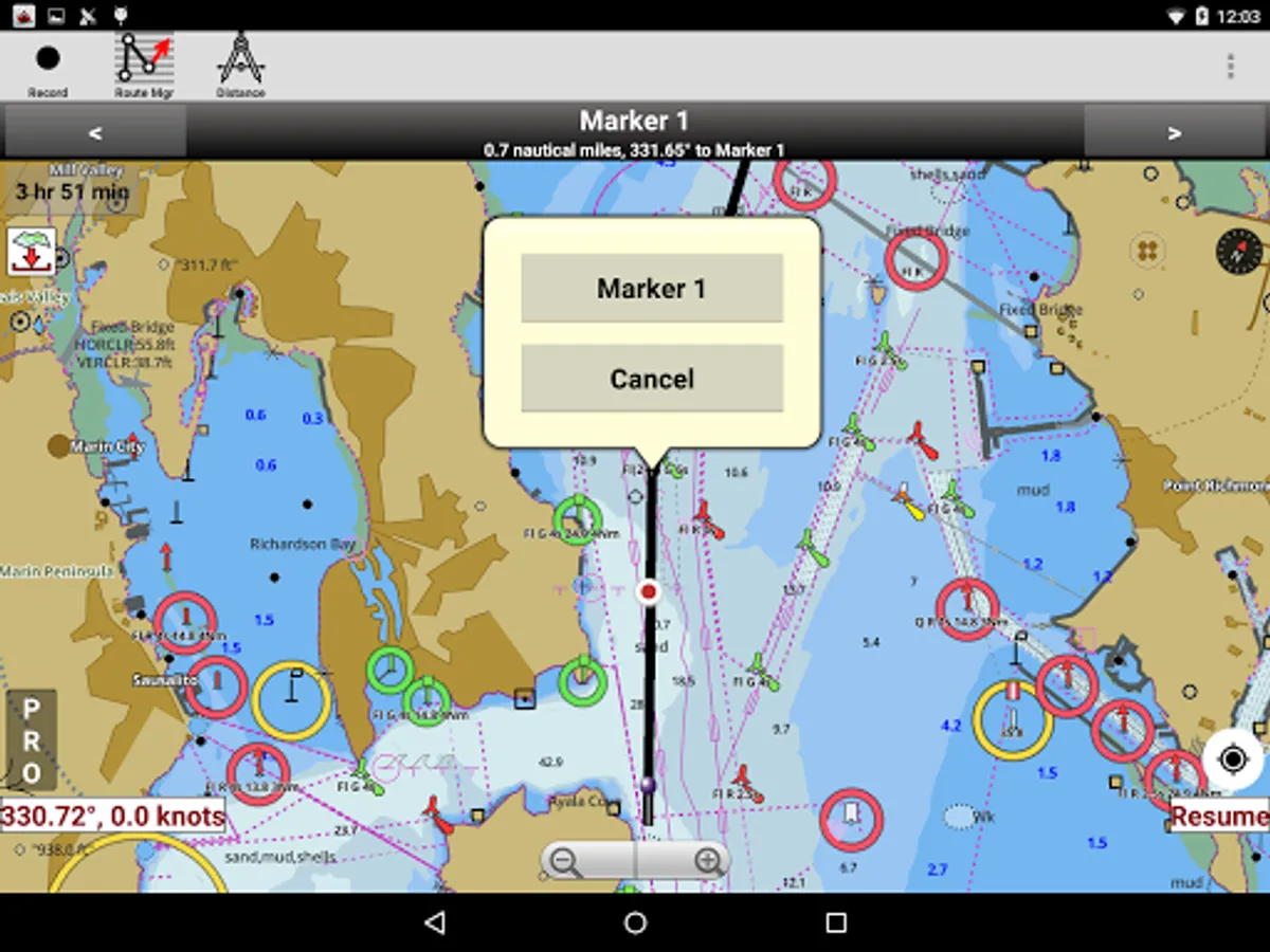 * approaching boating route marker prompt