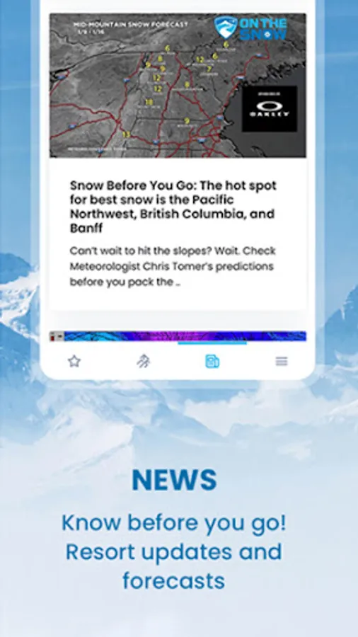-- Regional weather forecasts from Meteorologist Chris Tomer delivered to the app Inbox weekly with updates on which mountains will get the best snow for the weekend.