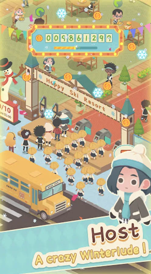 -Continue to upgrade the ski facilities to earn more gold coins!