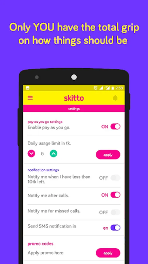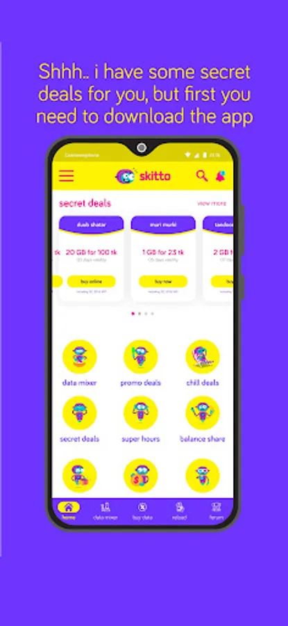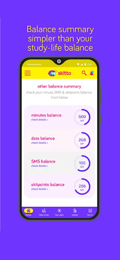 If you already have the awesome new connection, skitto, then you are at the right place friendo. This app is the sidekick you need for all things skitto. Starting from reloading your balance to helping out friends in need with emergency data to controlling your entire skitto profile, this app makes all the magic happen for skitto. But hey, nobody ever reads an app description for this long so just Get It and let’s get crackin!