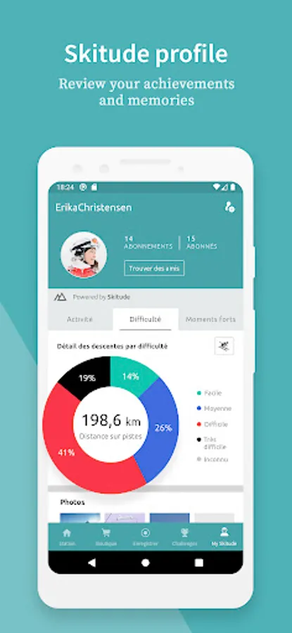 The App offers a range of features designed to optimize your experience before, during and after your trip. It’s very simple, plan your getaway and get real time updates on slope conditions. Set up your Skitude profile and track your activities on the slopes to get detailed stats about all your activities. And that’s not all, take part in challenges competing with the whole community, to be in with a chance of winning incredible prizes.