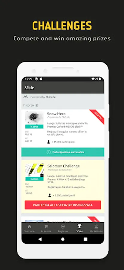 Set up your Skitude profile to track your activities using the GPS tracker. Find out where you are in the season's rankings and try to complete the challenges to be in with a chance of winning great prizes.