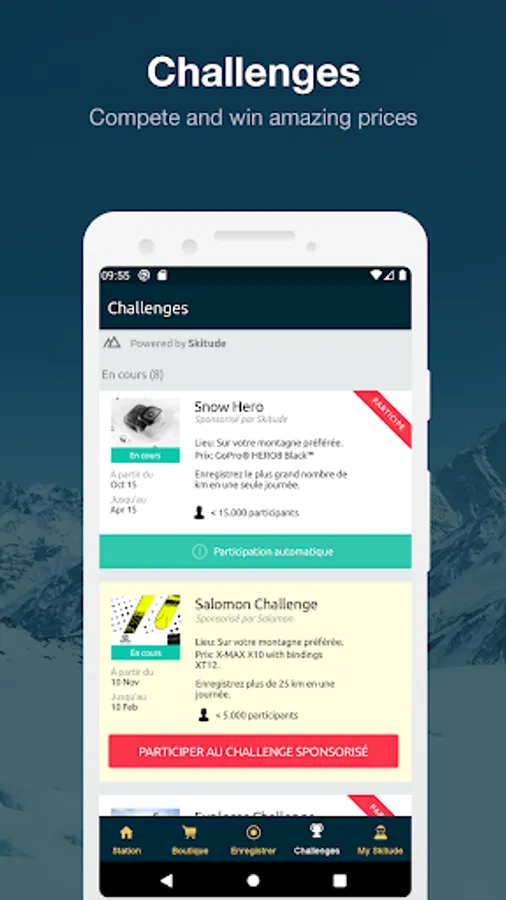 Set up your Skitude profile to track your activities using the GPS tracker. Find out where you are in the season's rankings and try to complete the challenges to be in with a chance of winning great prizes.