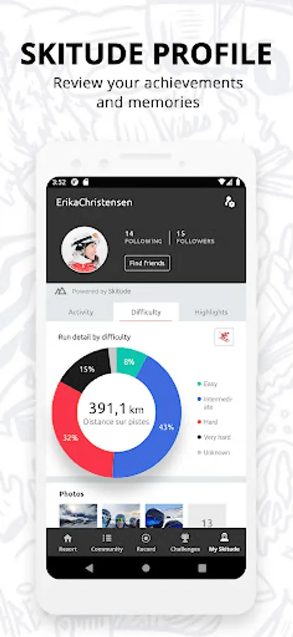 The App offers a range of features designed to optimize your experience before, during and after your trip. It’s very simple, plan your getaway and get real time updates on slope conditions. Set up your Skitude profile and track your activities on the slopes to get detailed stats about all your activities. And that’s not all, take part in challenges competing with the whole community, to be in with a chance of winning incredible prizes.
