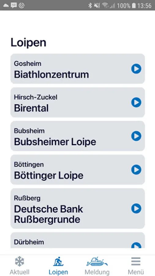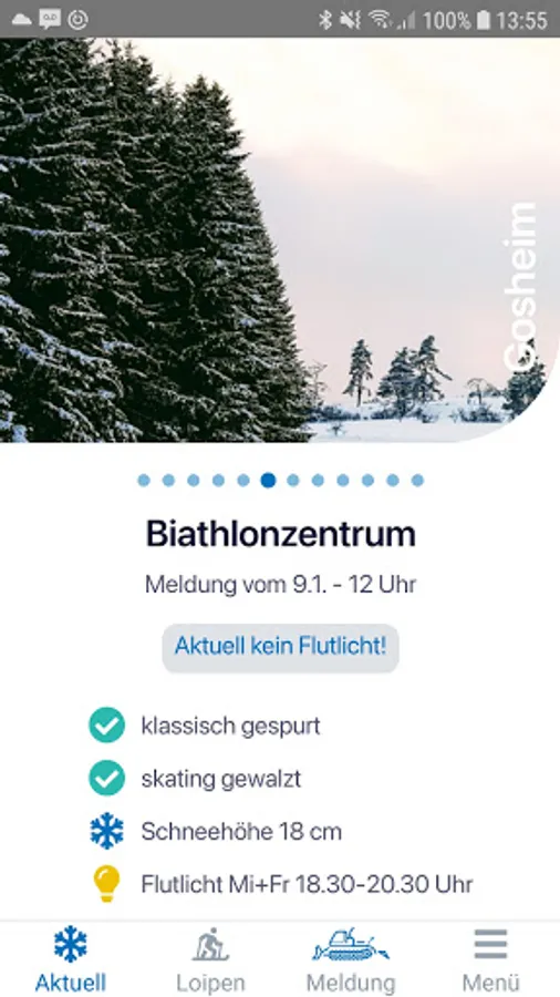 The Heuberg ski hiking trails are almost 100 km long circular trails, consisting of the Bubsheimer, Wehinger, Gosheimer, Böttinger, Spaichinger, Dürbheimer-Deutsche-Bank (Rußberg) and Mahlstetter trails, as well as the Hirnbühl trail and the night trail at the Steighof and at the Gosheim biathlon center. The app shows the current condition of the trails in real time.