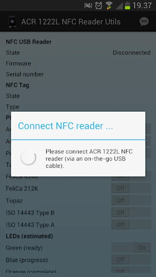 Connect the reader via an On-The-Go USB Cable (OTG-USB).
