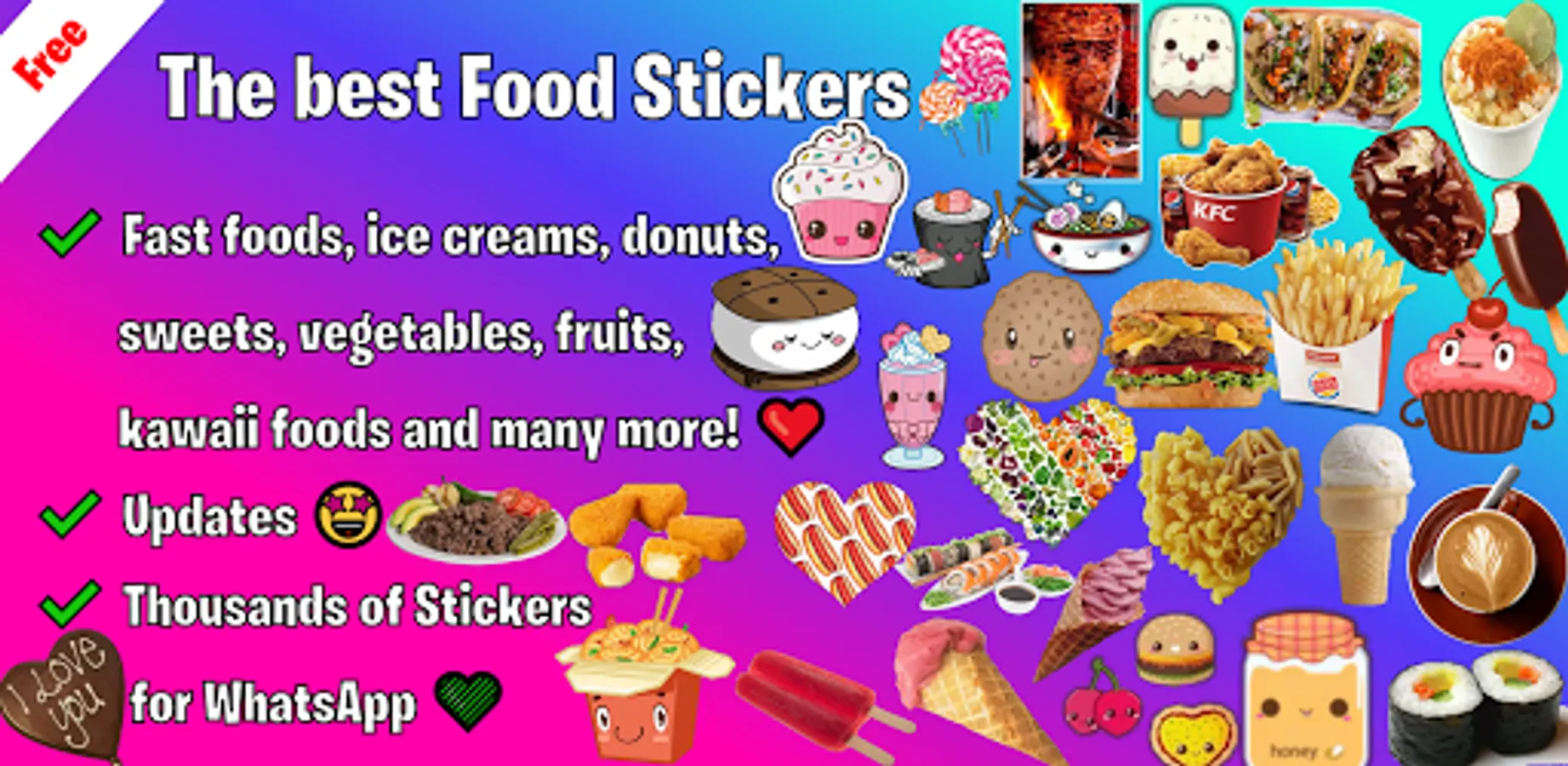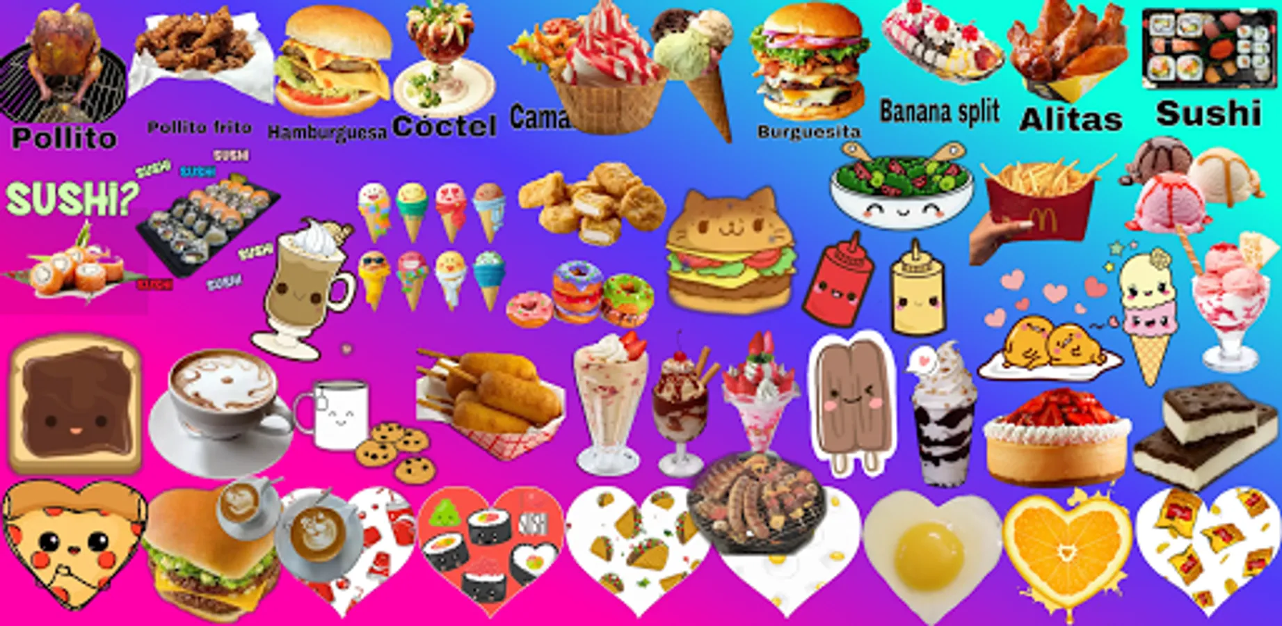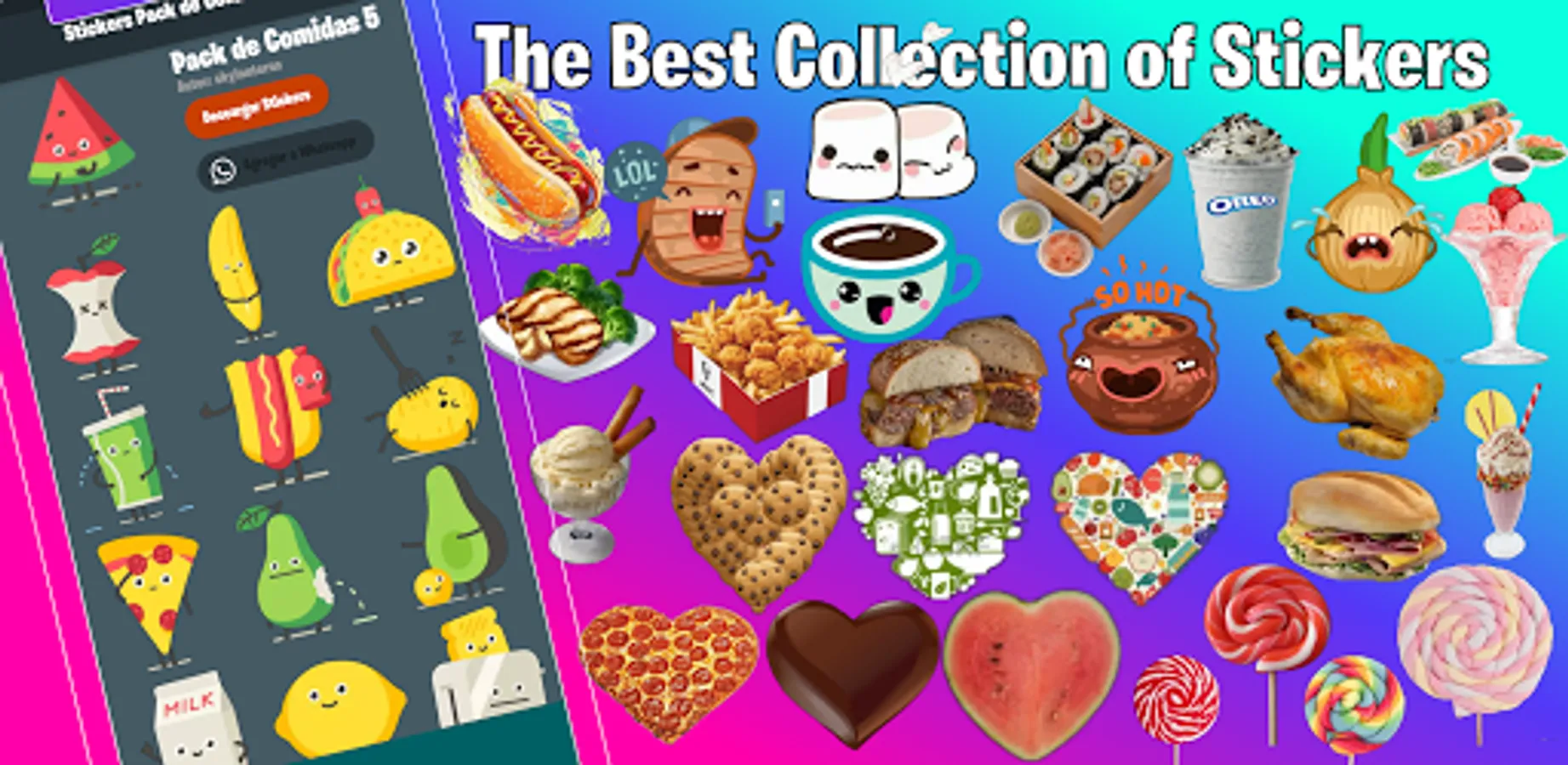 The Best Collection of Stickers for lovers of delicious food 😋 find thousands of stickers of food and drinks of all kinds, you can find from pizza, hamburger and even Vegetables and Fruits stickers, any food you can share with your friends ❤