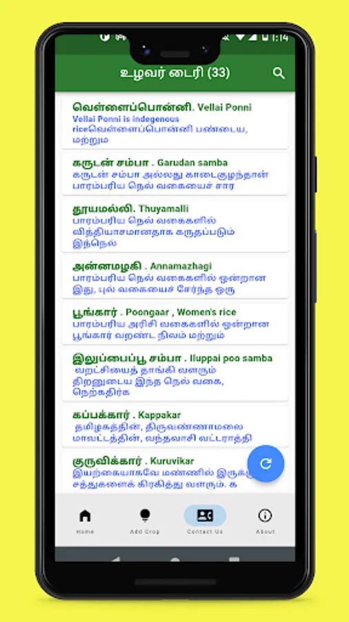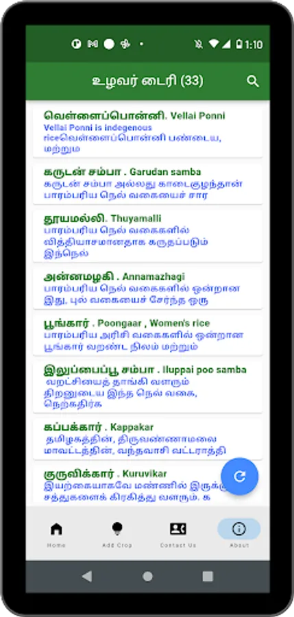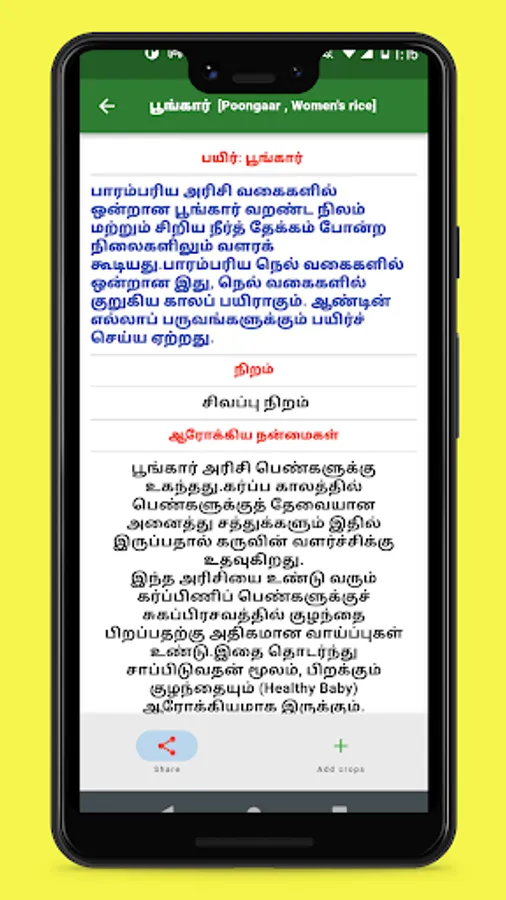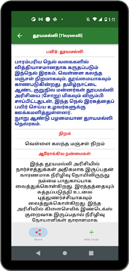 This Application brings details about indigenous rice crops , benefits, places and suitable seasons to cultivate the crop.
