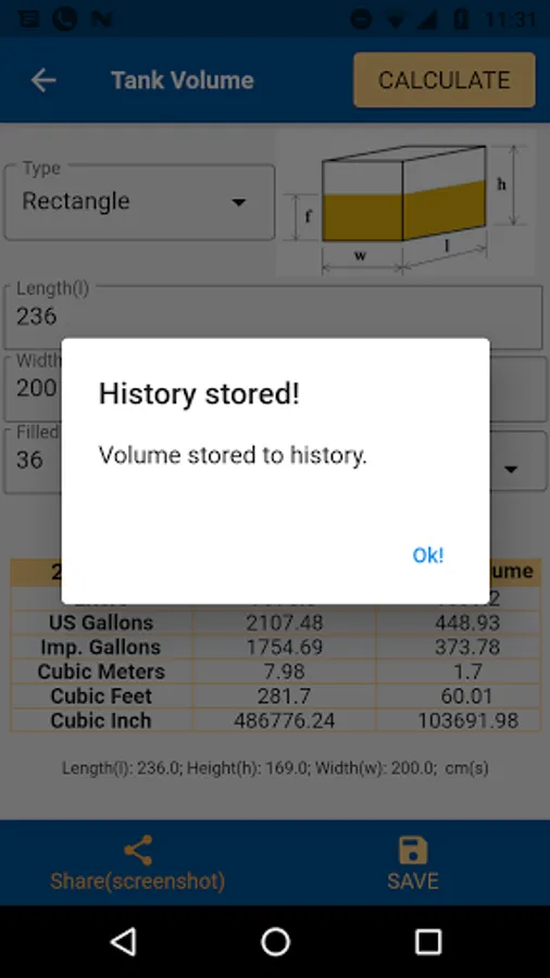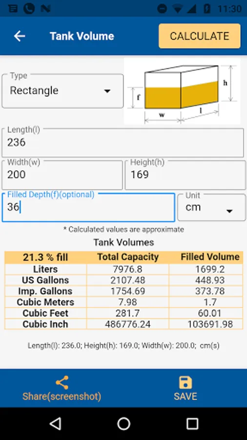 Efficient and easy way of calculating tank volumes.