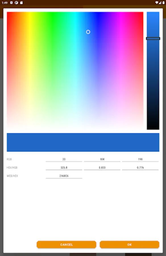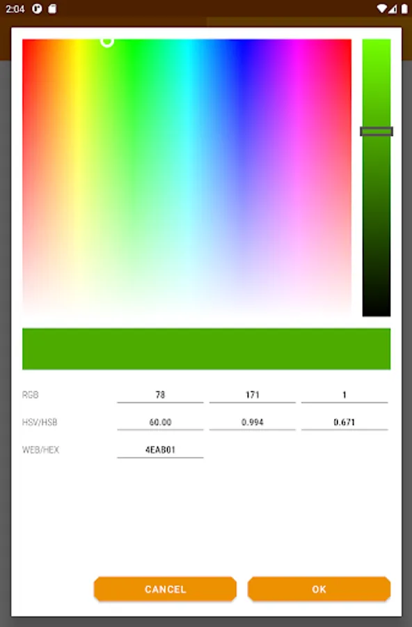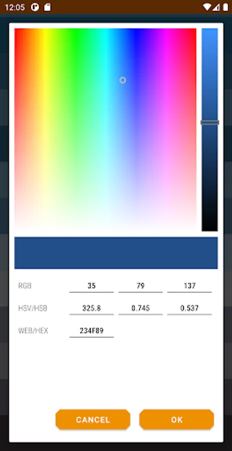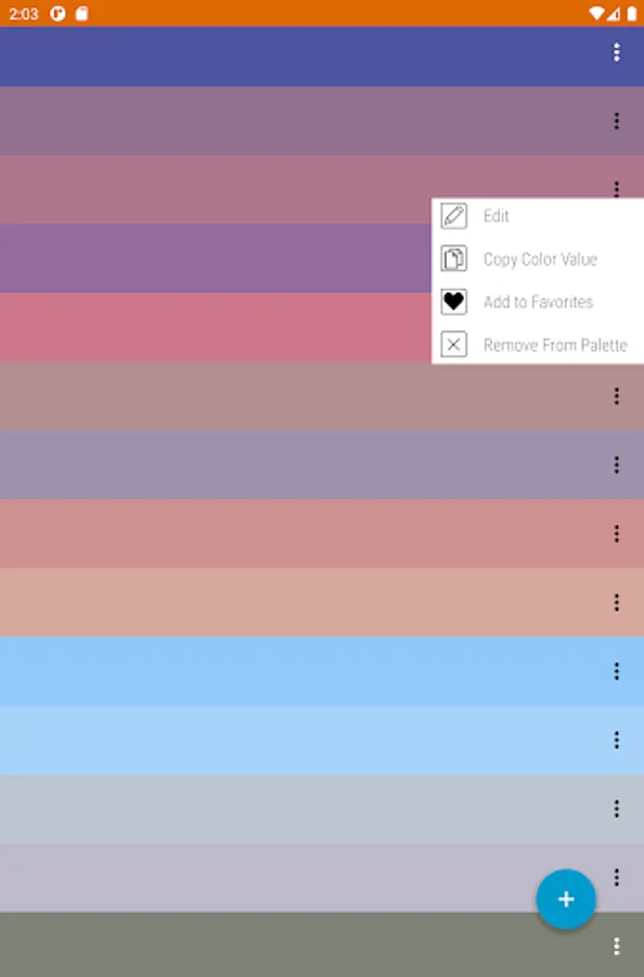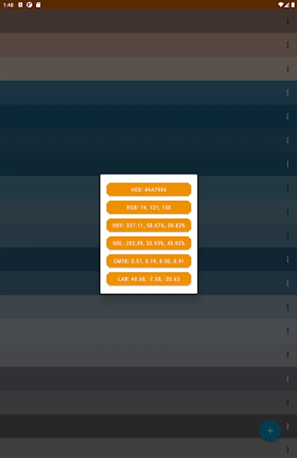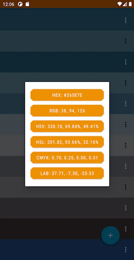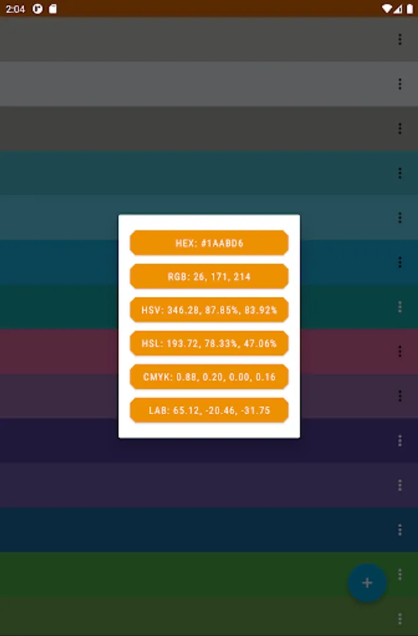 ✔ View/copy your palette's colors in Hue, Saturation, Vibrance (HSV colorspace)