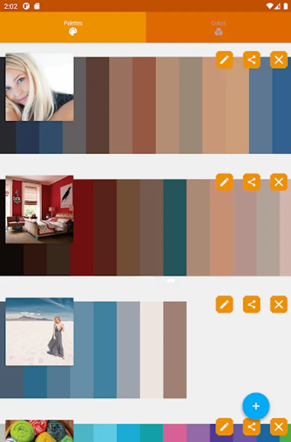 ✔ Each favorite colorful palette is displayed with the original photo