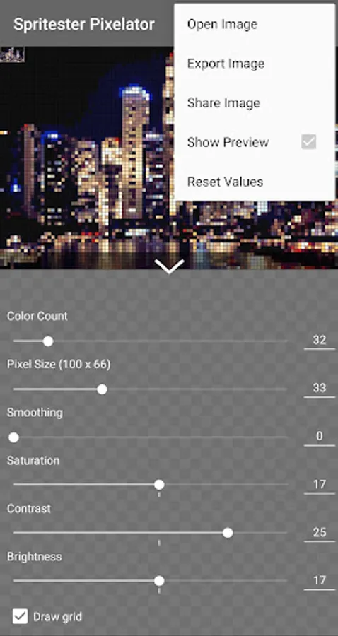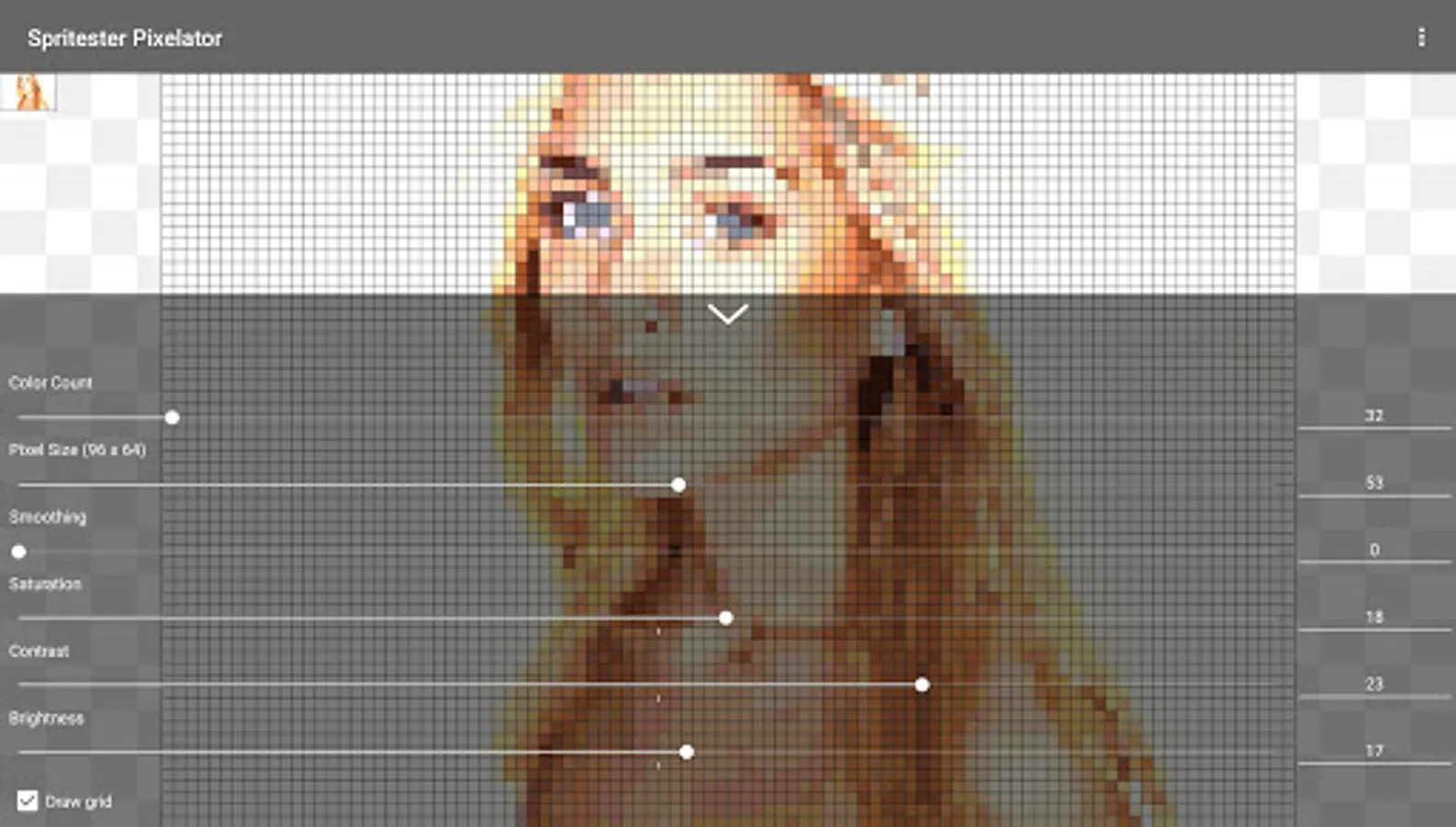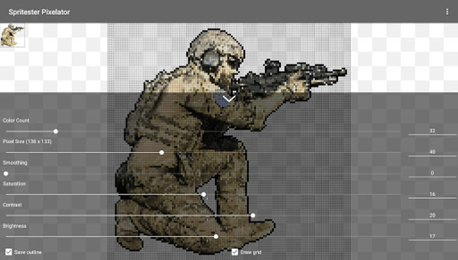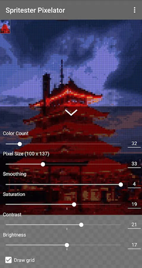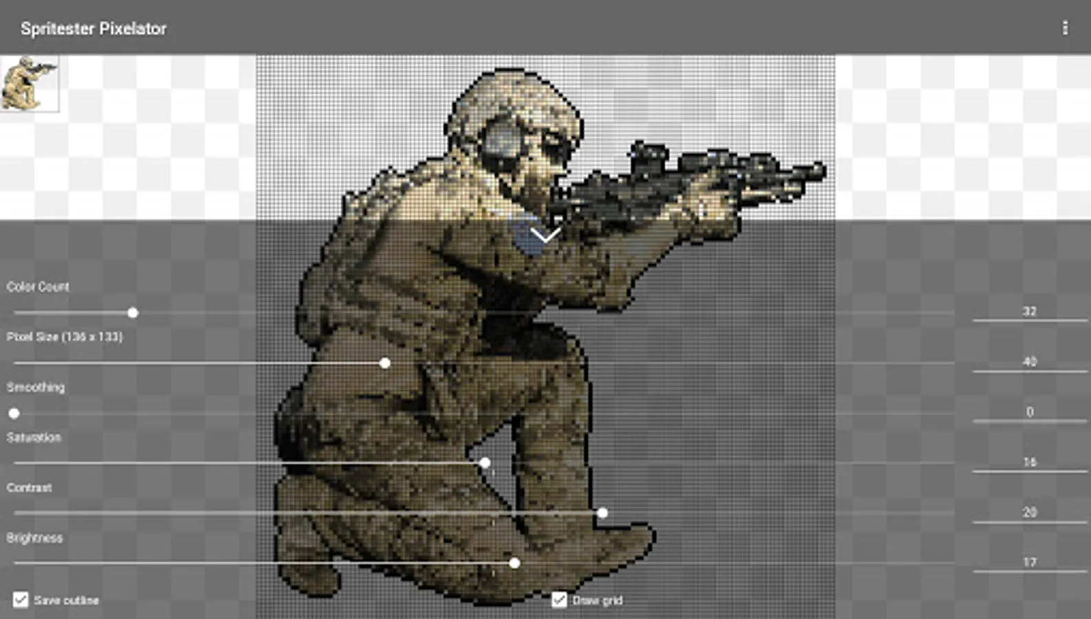 Spritester maintains and saves the state of your sprite at all times. No loss of work or data when you leave the app! You'll love this pixelator!