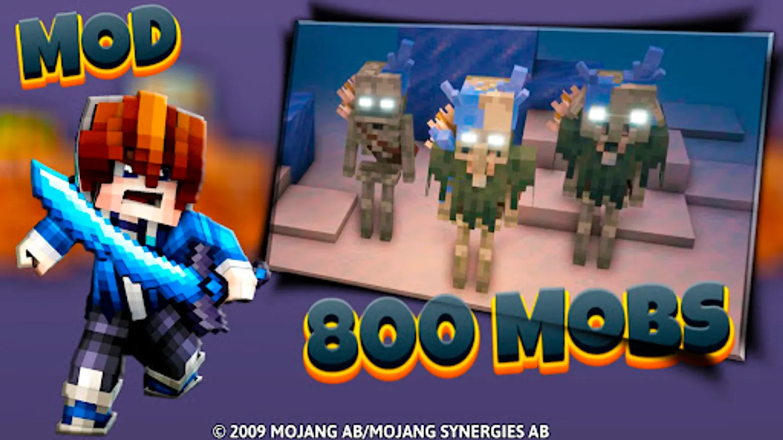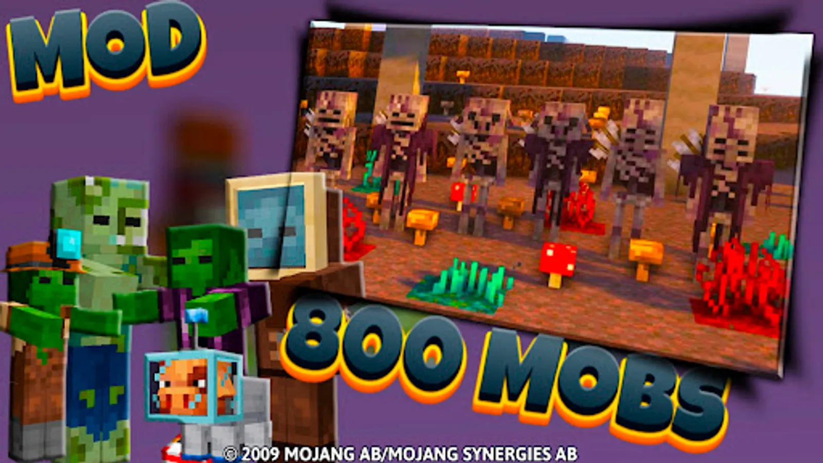 Hello, dear crafters. This is the 800 Mobs Mod for Minecraft PE that adds more than 800 mobs, npc, monsters, creatures, animals, bosses, mob animations, more new wardens and pe skins. Also you can get a lot of other craft pe blocks content for mcpe using this app, like wallpapers, skins, more new mods, maps and textures.