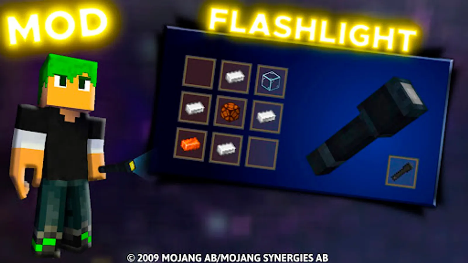 Hello, dear crafters. This is the Flashlight Mod for Minecraft PE that adds a dynamic lighting, flashlight and pe shaders. Also you can get a lot of other craft pe blocks content for mcpe using this app, like wallpapers, skins, more new mods, maps and textures.