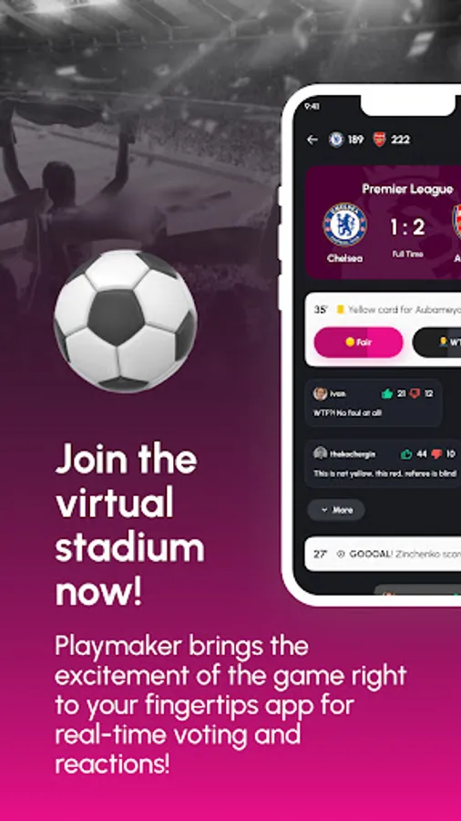 Immerse yourself in the world of football with Playmaker! Stay connected with fellow fans during live matches through our real-time chat app. With Playmaker, you can experience the excitement of a virtual stadium, connecting with fans from around the globe who share your love for the game.