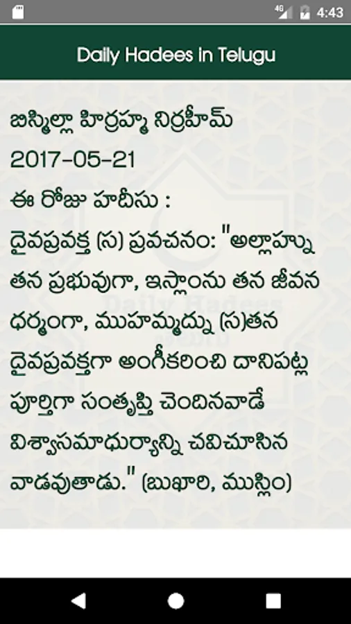 App shows daily one hadees in telugu.