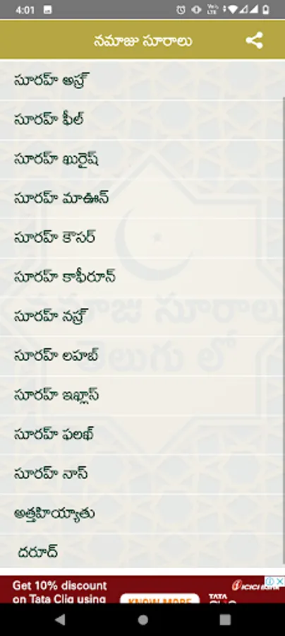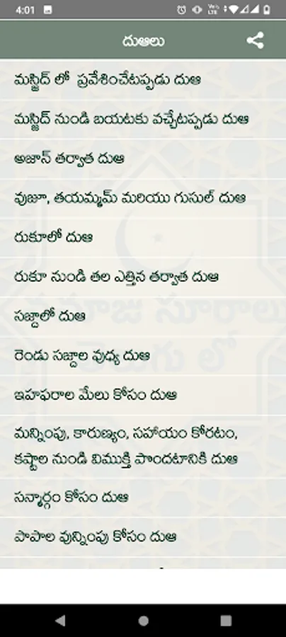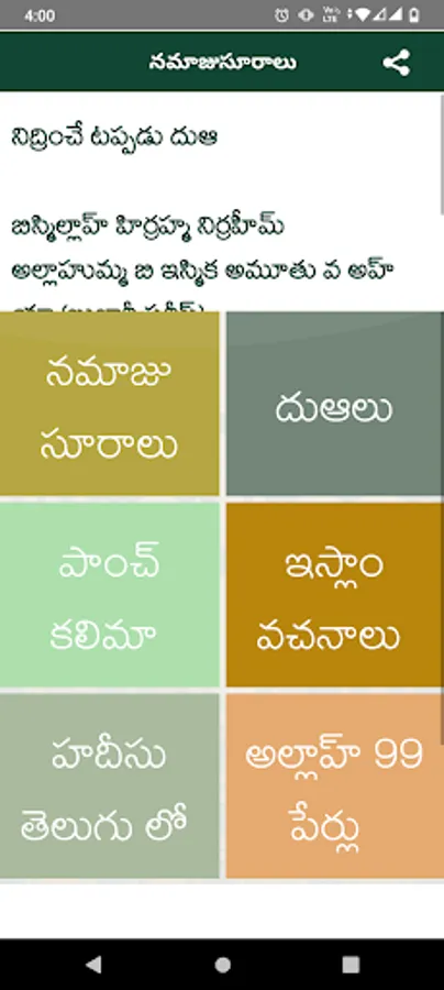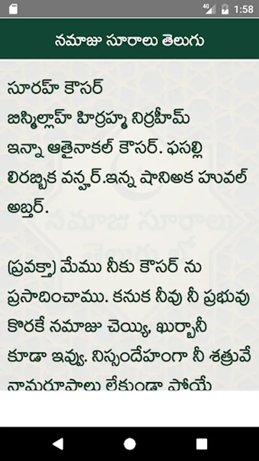 Namaz Surah (నమాజు సూరాలు తెలుగు లో ) app contains short namaz surah in telugu Language.