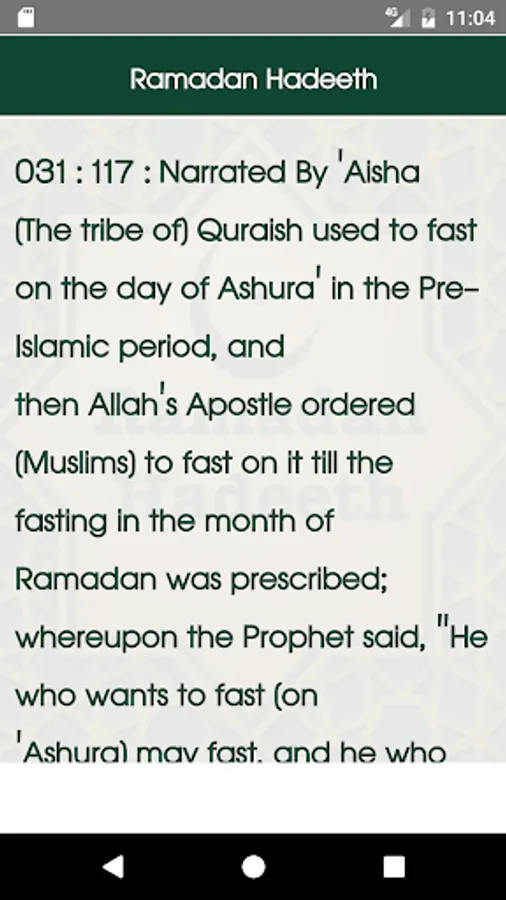 App provides list of hadees from Sahi Bukhari about Ramadan Fasting. App Provides info about Hadees of Sahur , Iftar in Ramazan month. App contains information in English.