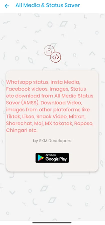 All Media & Status Saver (AMSS) is mobile app to download Photos, Video, Status etc