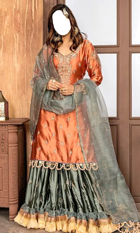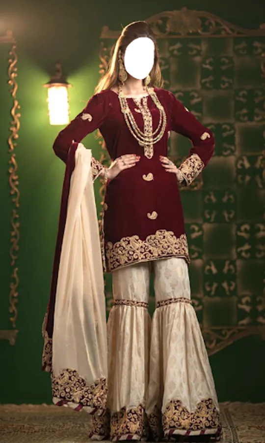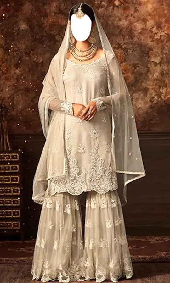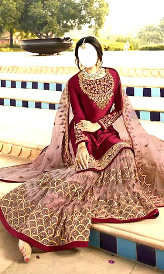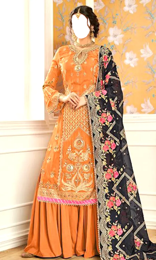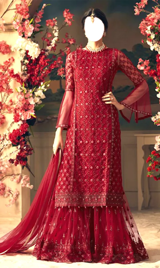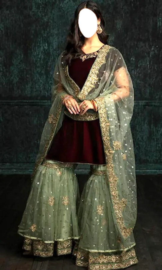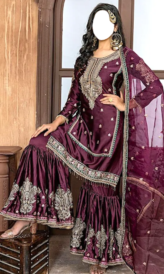 the differences between Sharara, Gharara, Dhaka pajamas and farshi pajamas are Gharara is similar to sharara but it has two legs, loose pants, in other words, pallazo.we have created this app to check your look in these different designer sharara dresses. All you need is to download this app for free and choose your straight looking pics and fit in your selected dresses.
