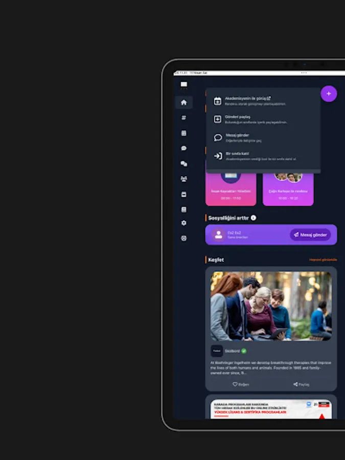 By increasing communication, efficiency and sociality in university education, Skolbord gathers the tools for all your needs on a single platform. With the tools it has, the university focuses on the solutions of education problems and creates a special experience for you.
