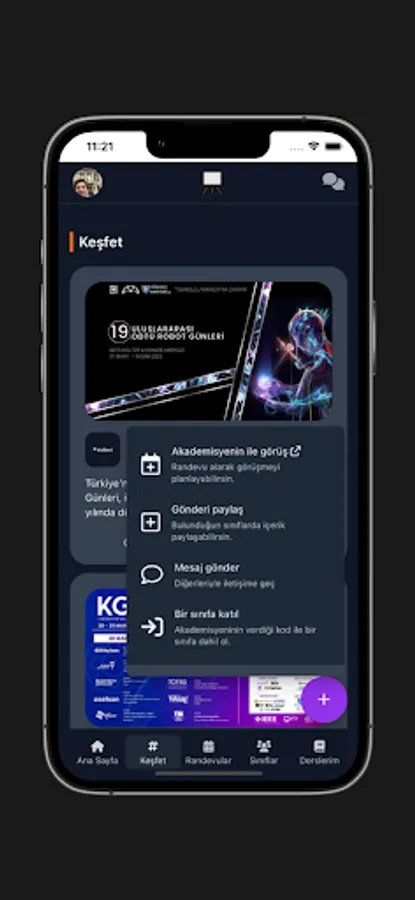 You can also access content related to news, announcements, campaigns and activities specific to your university. Menus in the cafeteria, discounts in cafes, deals in stores at school and more. Access your school's events, conferences and seminars.