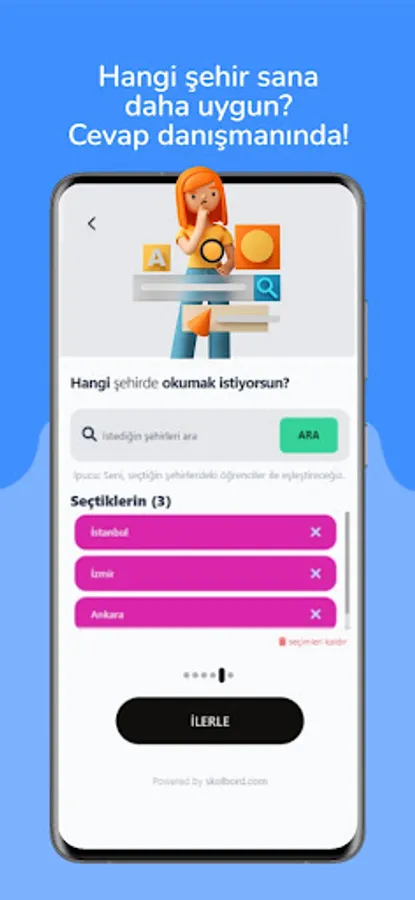 All you need to do for the University Preference Assistant, which is completely free, is to register with your name, surname and personal e-mail address. Choosing the section for which you have already made your decision or are undecided with the “Which Section Do You Want” section that follows. Then, to determine the city where you will spend maybe four or more years to achieve your dreams and future. Finally, to determine the university or universities that are most suitable for you for your education. And you can choose more than one option when determining your criteria. 🥳 In this way, you can choose the city, department and university as you wish without being tied to a single option. It also makes it easy for you to update your university choice assistant decisions when you re-enter. After all this, you can find answers to all your questions by contacting the advisor student directed to you via Skolbord.