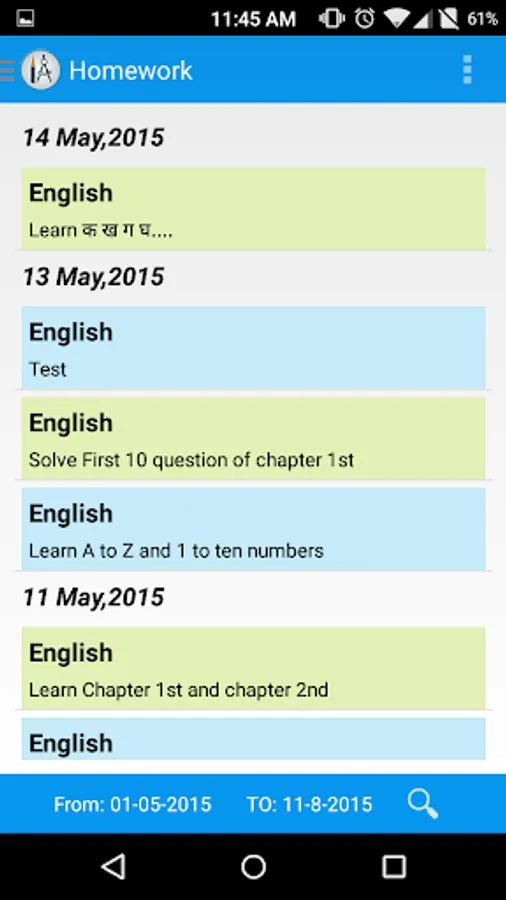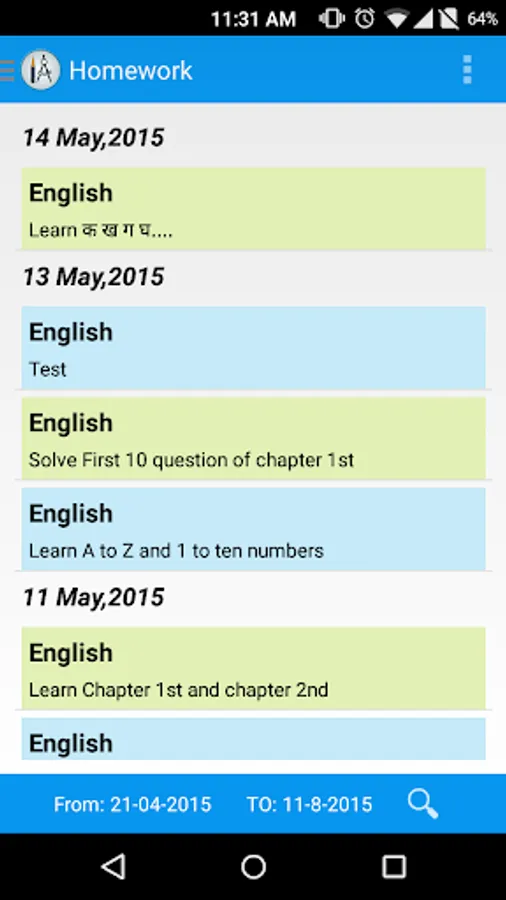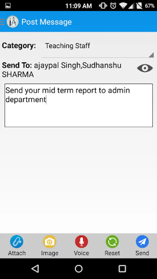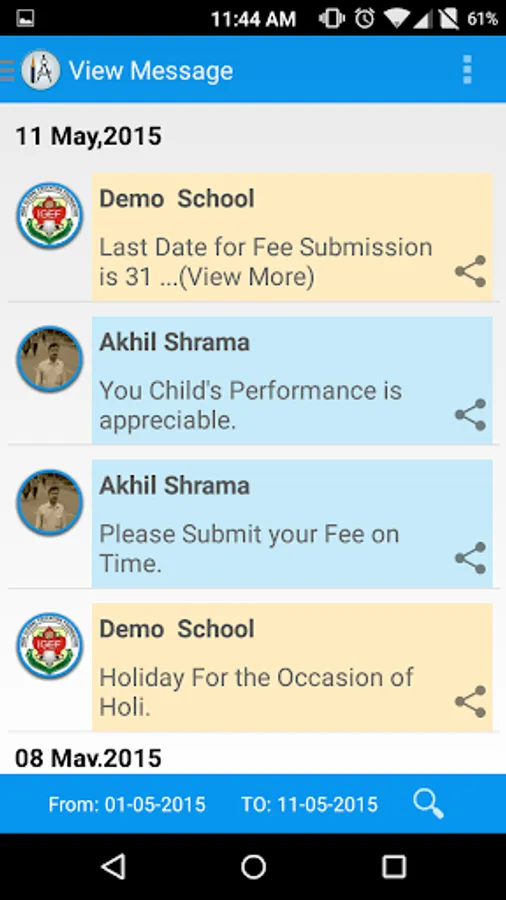 Using this application teacher can mark class attendance, post homework to all students in a single click, send personal or group message to parents and can also receive message from parents. With this tool school principle, teaching and non teaching staff can send the official messages to each others.