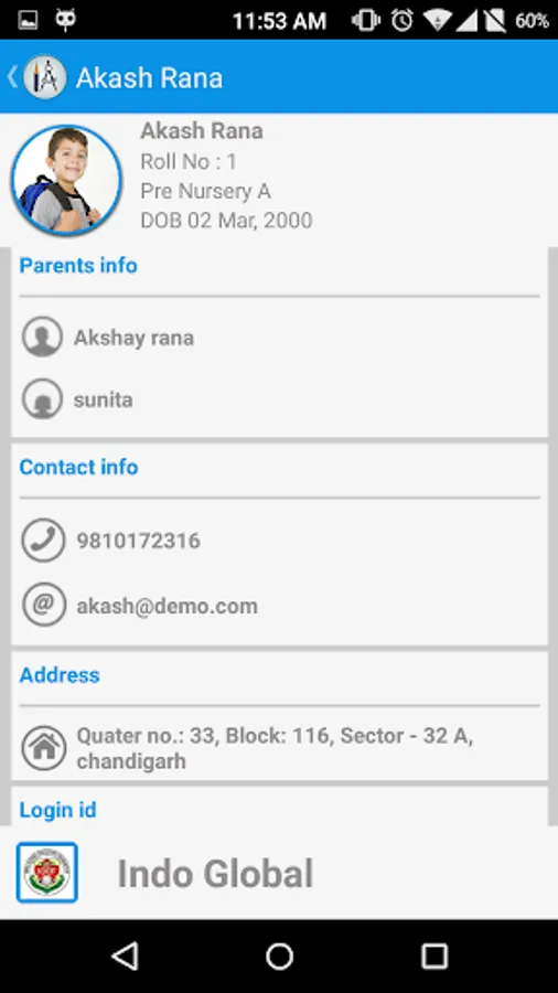 Also students can have details of their class work, school years calendar, photo gallery, exam results, and class/school messages etc.