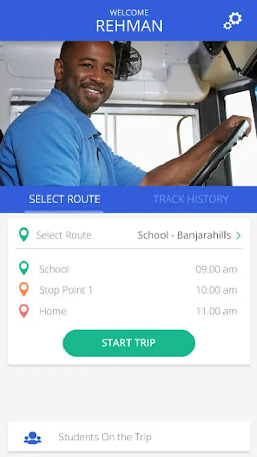 details. Driver of school bus can use this app for selecting ‘start journey’ option, which gives the real time position of the bus. Driver also get details of all students in the bus and intimate parents when reached to destination. Once the bus trip is over, driver can select the ‘end journey’ option and this notification will be sent to all parents.