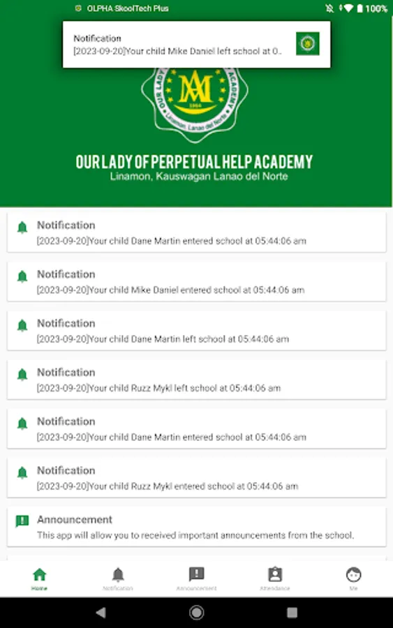 OLPHA SkoolTech Plus App where parents can monitor thier children attendancce and received importan announcements from school