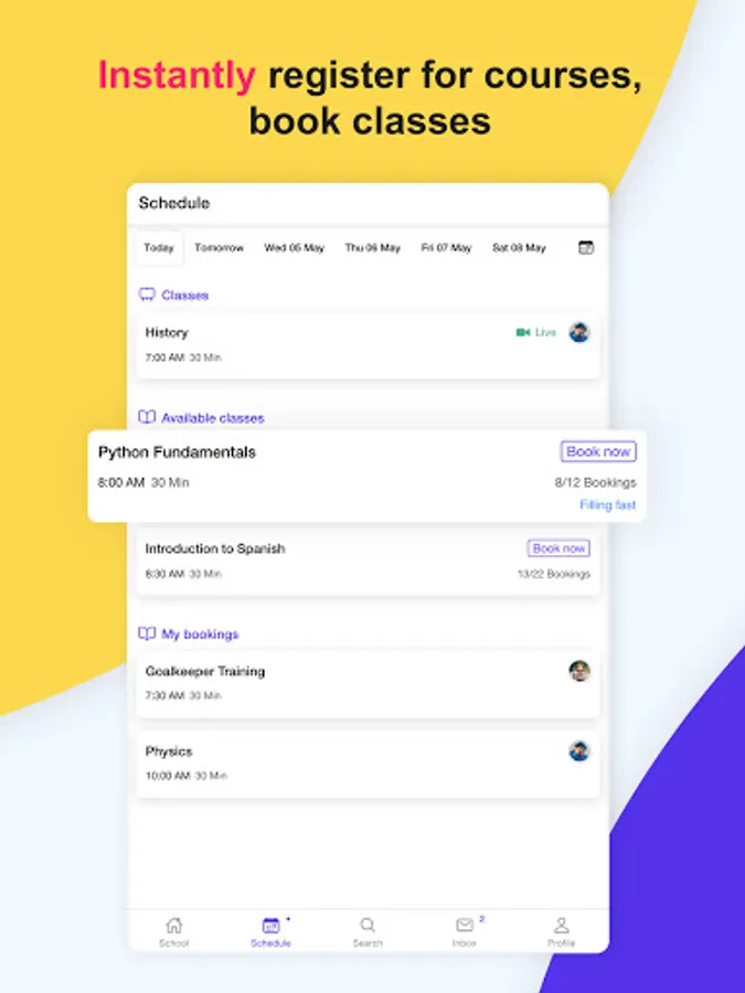 Instantly connect to your school. Book your courses on the go. See all schedules, communication, due dates, payments in one place.