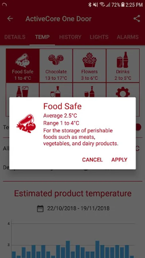 Receive alerts direct to your phone if the temperature of the fridge changes for any reason, including recommended actions to swiftly resolve the issue.