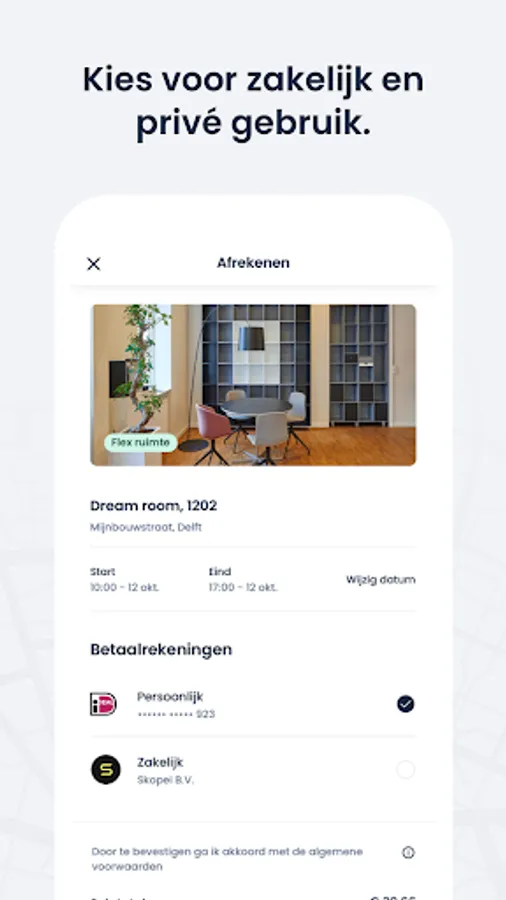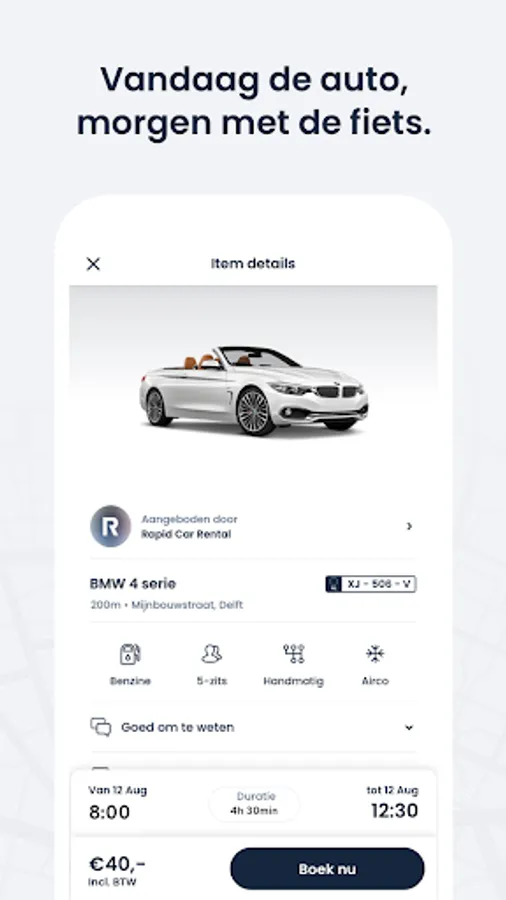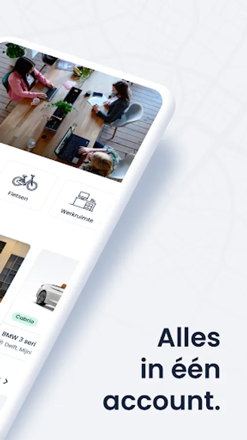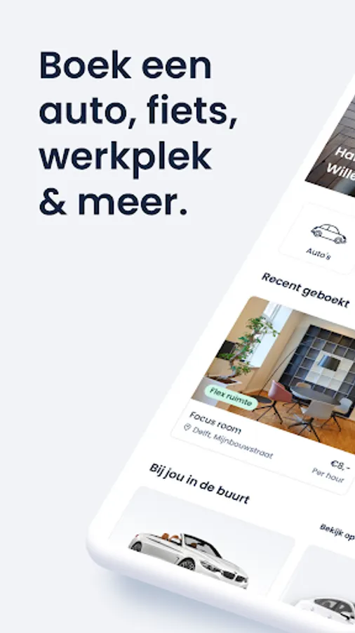 Geen gedoe meer, altijd bij de hand: met de app zoek en boek je wat je nodig hebt en in sommige gevallen maak je de auto of de vergaderruimte open met dezelfde app. Geen sleutels of pasjes meer.