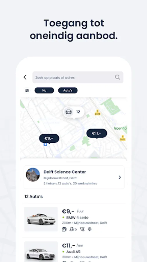 Oneindig aanbod voor mobiliteit; veel verschillende (elektrische) auto’s en fietsen bij jou in de buurt.