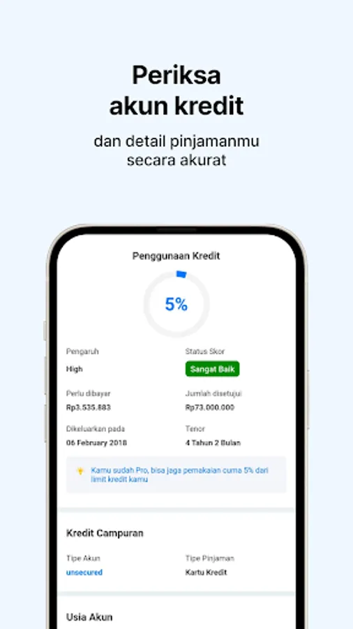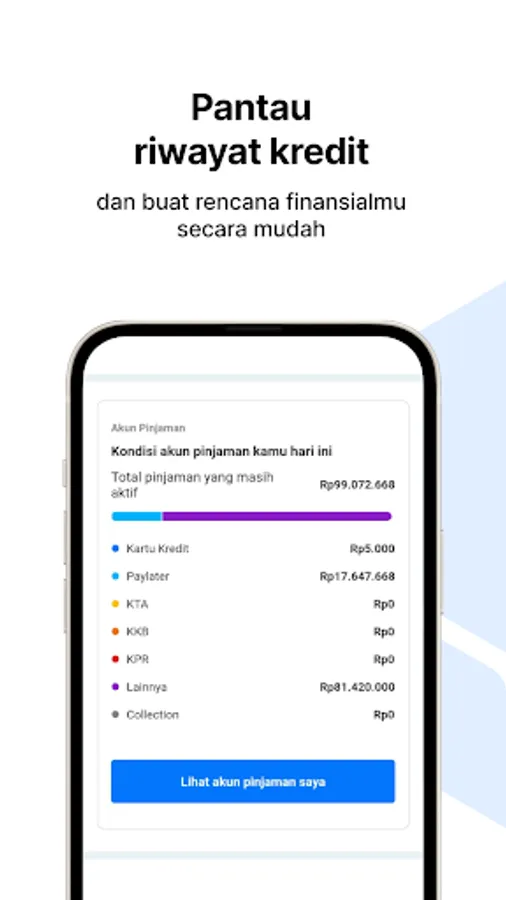 Semua fitur SkorLife bisa digunakan dan dipahami secara mudah. Mulai dari cek skor kredit dan status kolektibilitas, lihat riwayat kredit, pantau pinjaman yang menggunakan ID kamu, sampai baca tips soal reputasi finansialmu yang dibuat secara khusus dan akurat.