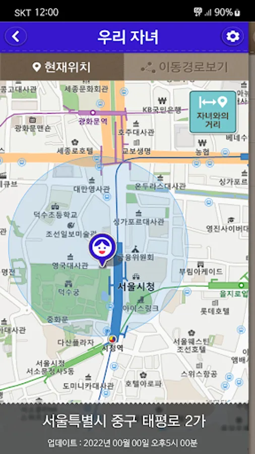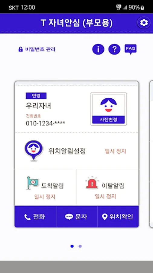 SK Telecom T Child Safety Service is a safety service that automatically informs designated guardians of the location of children under the age of 19 by text message, and informs them of departure/arrival situations in a specific area.
