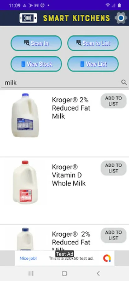 SmartKitchens allows you to scan UPC barcodes and add the items to your inventory or to your shopping list. We are integrated with Kroger Developers allowing us to search Kroger's website for items to add to your shopping list.