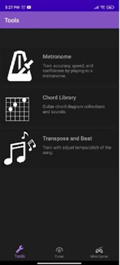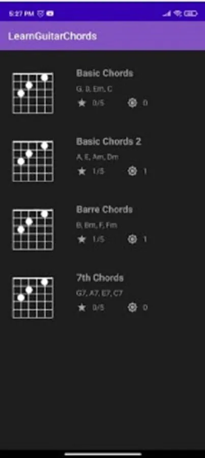 Learn Guitar Chords is an application to help people learn how to play guitar. This application has several features that recognize the chords played by the users using Fast Fourier Transform method and send a feedback.
