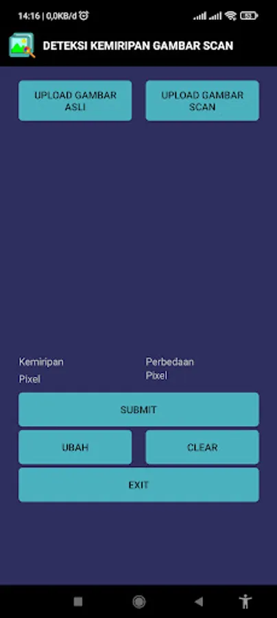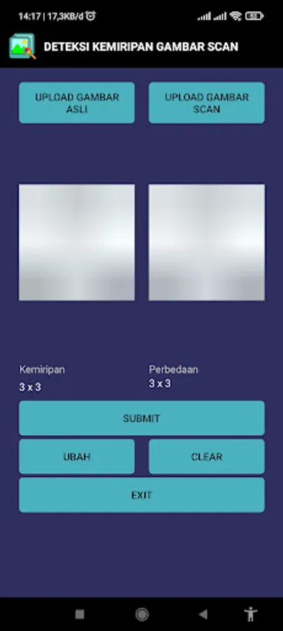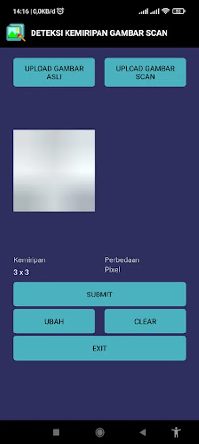 This application is an application that can find and calculate the similarity value between the first image and the second image that we want with the output in the form of a percentage value of similarity and difference from the two images.